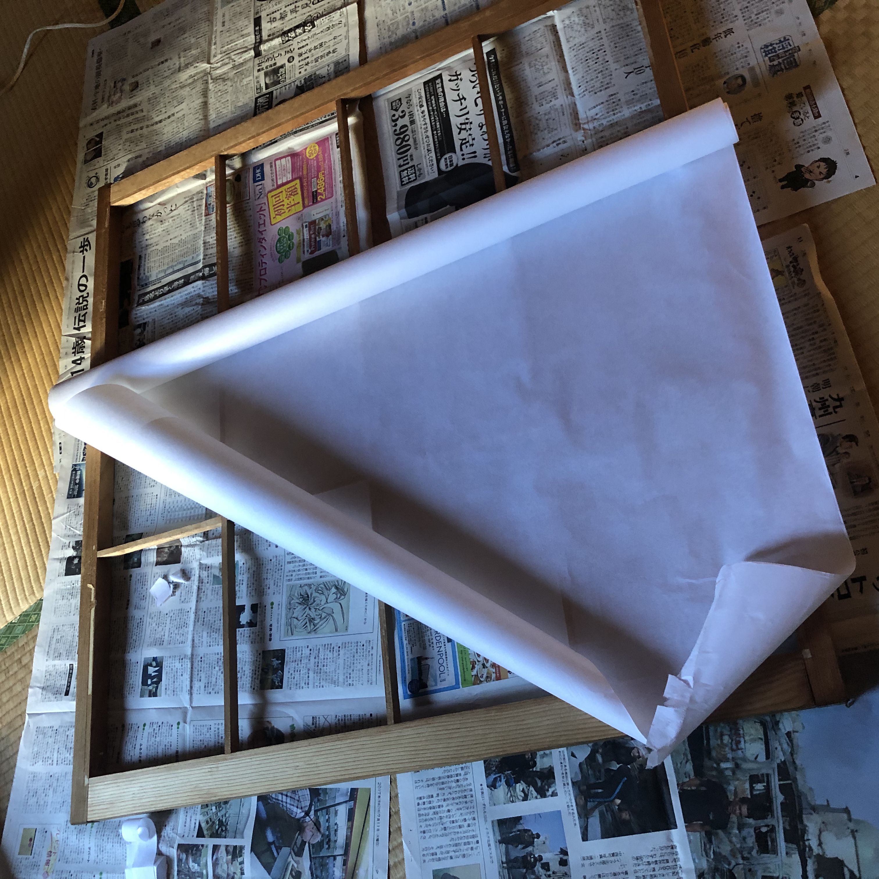そんな台風一過の本日。荷物置き兼練習部屋として使わせてもらってる部屋の和室の障子の張替えをやりました。もう随分と長い間そのままなので障子も風化してきて剥がれてきて外から見てもみすぼらしくもありで。今日は仕事も長くなってしまったので良いタイミングだと思い障子を張り替えてみました。