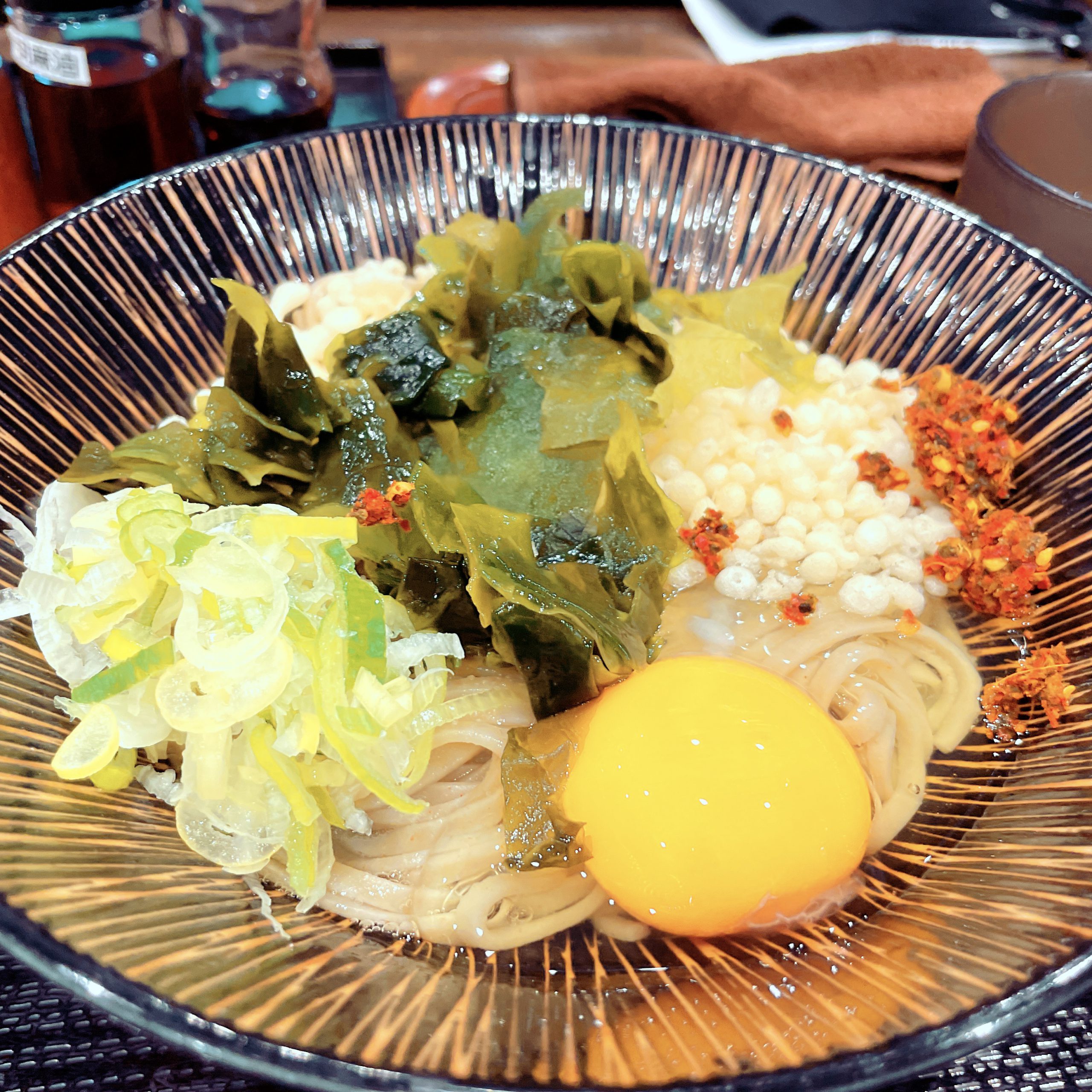 水曜日の昼ごはんは時々レッスン会場の近くにある蕎麦屋へ。前回食べに行った時に見つけたメニュー。丸い天かすと生卵にネギのシンプルな蕎麦。僕はこれに無料でトッピングできるワカメに自家製の七味唐辛子をたっぷり。汁が少なめなのがちょっと変わってるけれど、これなかなか美味しい。値段も350円とリーズナブル。この店の天ぷら蕎麦もなかなか美味しいんだけれど、今日食べたこの蕎麦(名前忘れちゃった)もまた食べたくなる味だ。