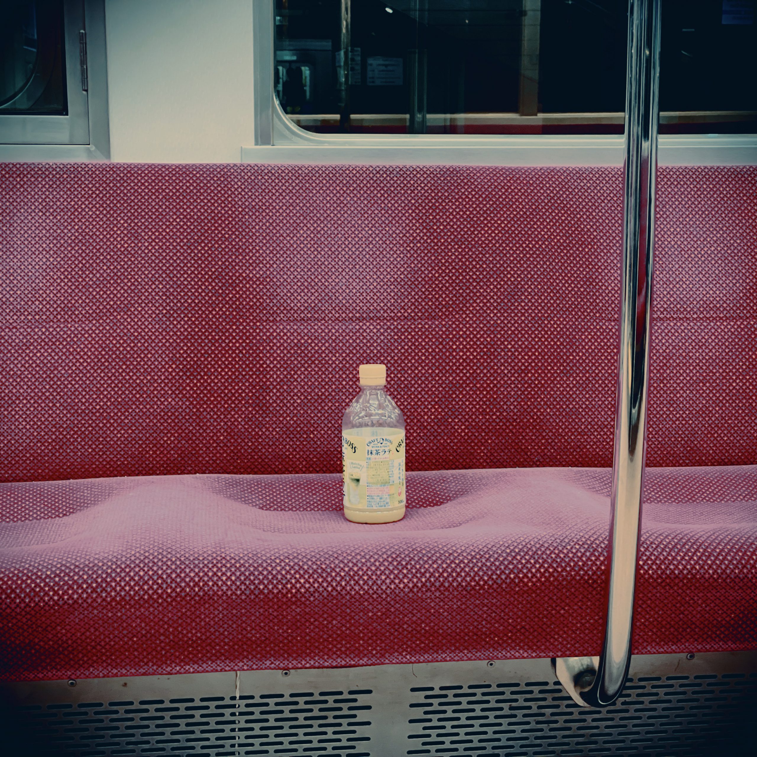 その後レッスンして帰りの電車。座った正面にペットボトルが鎮座。。さぉ帰って寝よう。