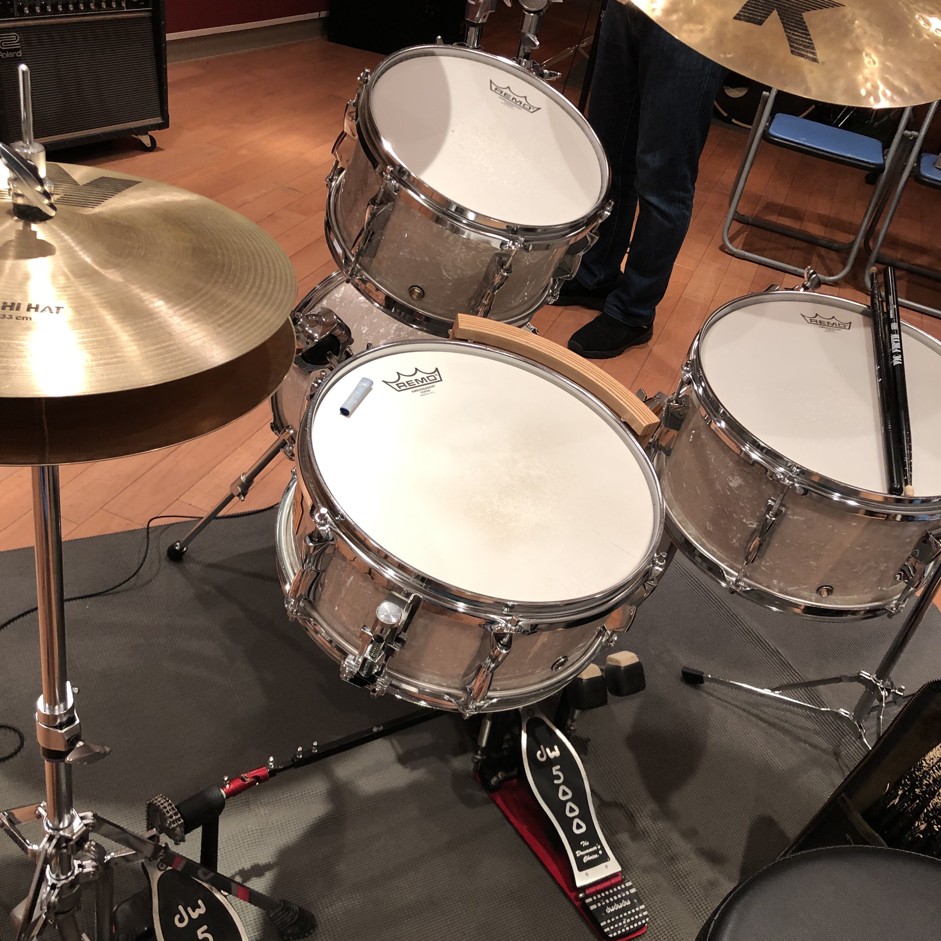 どうやらその後輩も卒業する時にまた一つ下の後輩に譲ったと言うのを今日譲られた本人から話を聞いてビックリ。しかも今たまたまここの楽器倉庫にありますから叩きますか?って言われ40年振りくらいの再会を果たしました。少し叩かせてもらって「ああ、こんな感じだったな」って懐かしく思いました。とにかくちゃんと現役で叩いてもらえていて嬉しかったです。